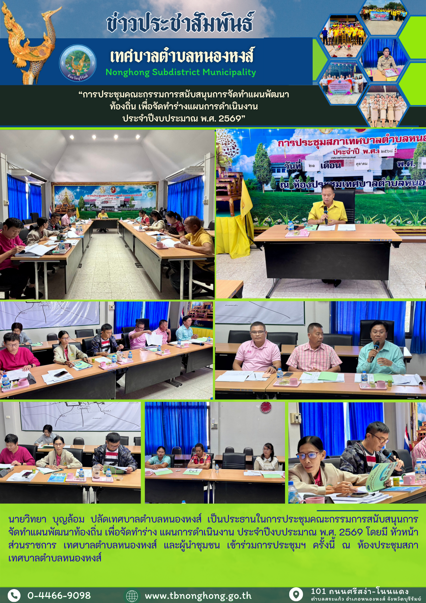 นายวิทยา บุญล้อม ปลัดเทศบาลตำบลหนองหงส์ เป็นประธานในการประชุมคณะกรรมการสนับสนุนการจัดทำแผนพัฒนาท้องถิ่น เพื่อจัดทำร่าง แผนการดำเนินงาน ประจำปีงบประมาณ พ.ศ. 2569 โดยมี หัวหน้าส่วนราชการ เทศบาลตำบลหนองหงส์ และผู้นำชุมชน เข้าร่วมการประชุมฯ ครั้งนี้ ณ ห้องประชุมสภาเทศบาลตำบลหนองหงส์