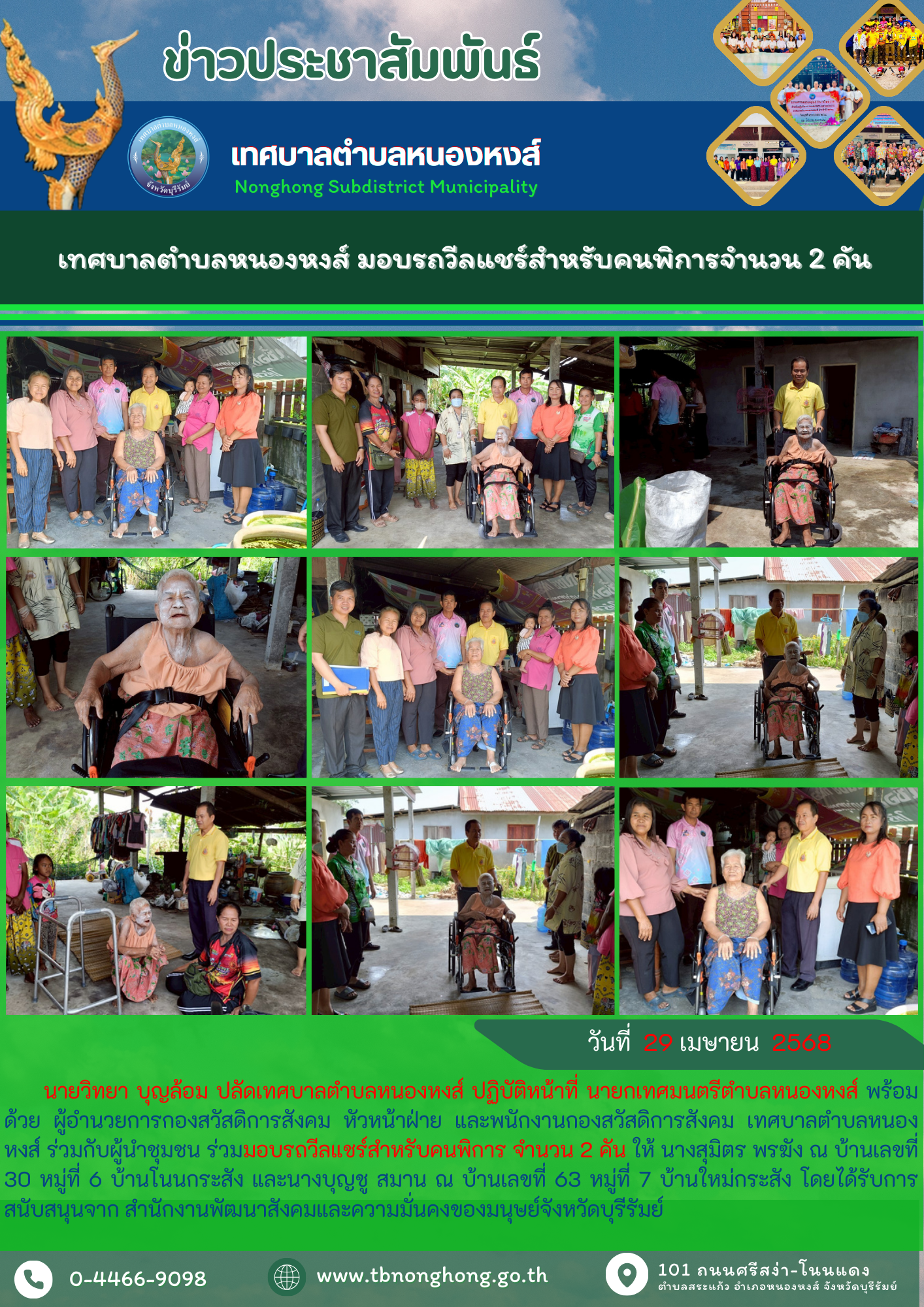 เทศบาลตำบลหนองหงส์ อำเภอหนองหงส์ จังหวัดบุรีรัมย์:www.tbnonghong.go.th