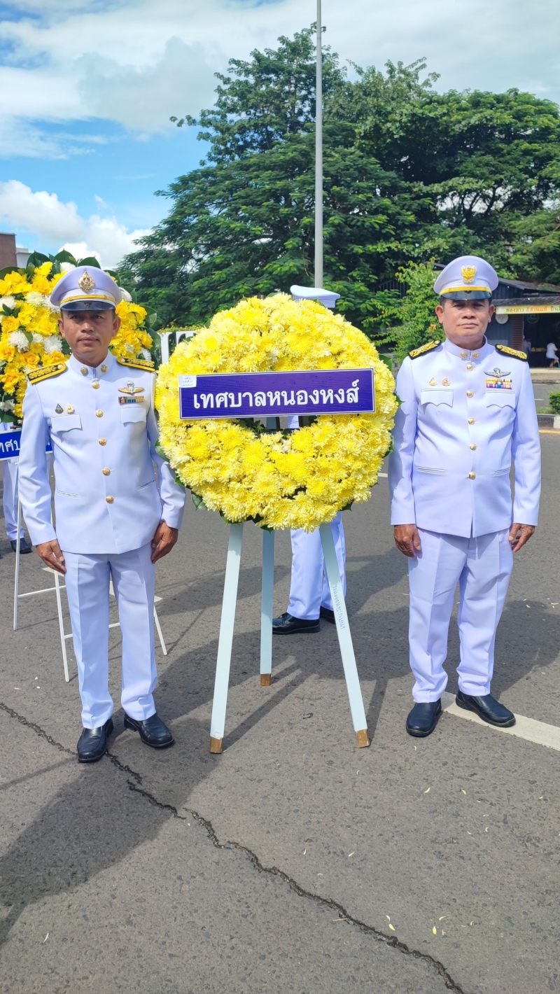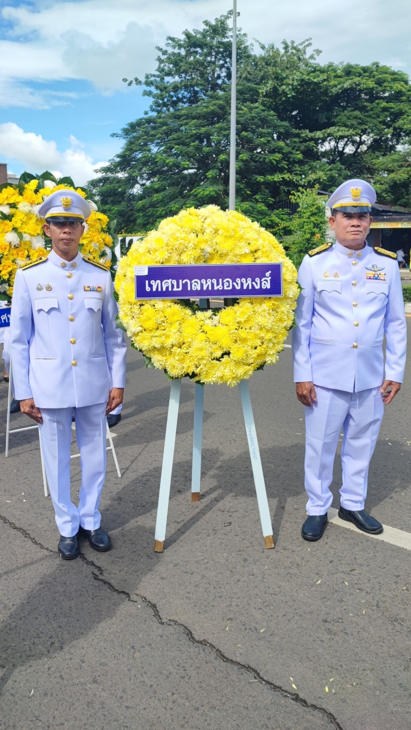 นายกว้าง ศรนอก นายกเทศมนตรีตำบลหนองหงส์ พร้อมด้วย หัวหน้าส่วนราชการ ข้าราชการ และครูศูนย์พัฒนาเด็กเล็กเทศบาลตำบลหนองหงส์ ร่วมพิธีวางพวงมาลา น้อมรำลึกในพระมหากรุณาธิคุณ พระบาทสมเด็จพระบรมชนกาธิเบศร มหาภูมิพลอดุลยเดชมหาราช บรมนาถบพิตร เนื่องในวันนวมินทรมหาราช 13 ตุลาคม 2568 ณ บริเวณด้านหน้าพระบรมราชานุสาวรีย์พระบามสมเด็จพระพุทธยอดฟ้าจุฬาโลกมหาราช (รัชกาลที่ 1) ต.อิสาณ อ.เมือง จ.บุรีรัมย์