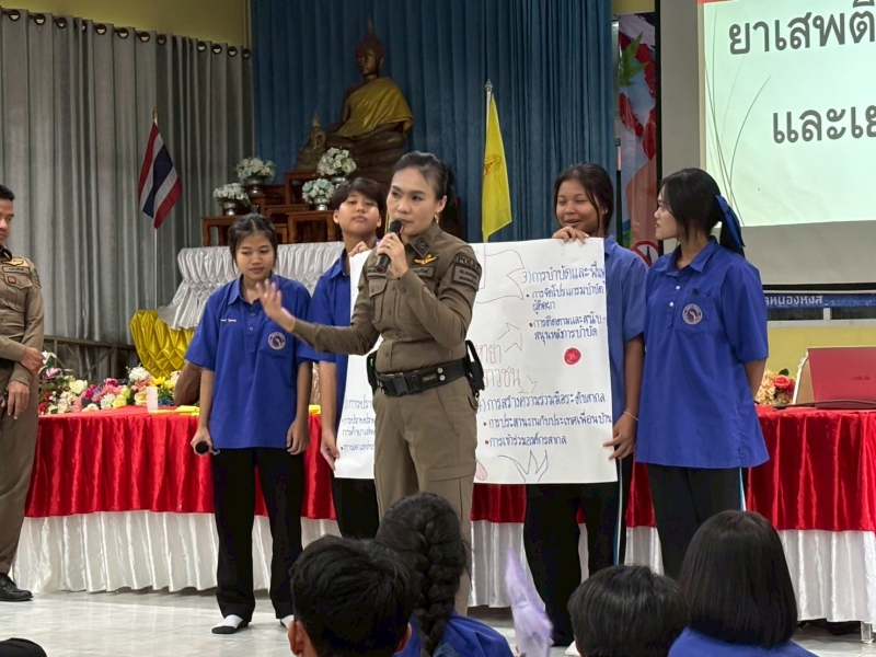 สำหรับการจัดโครงการฯ ครั้งนี้ ได้รับเกียรติวิทยากรโดย ร.ต.อ.หญิงภัทรวรินทร์ แก้วเกตุ ตำแหน่ง รองสารวัตรธุรการสถานีตำรวจภูธรหนองหงส์ ร.ต.ท.สุรเกียรติ ซอนรัมย์ ตำแหน่ง รองสารวัตรสายงานสืบสวนสถานีตำรวจภูธรหนองหงส์ พร้อมคณะจากสถานีตำรวจภูธรหนองหงส์ มาบรรยายให้ความรู้ เรื่อง ยาเสพติด สถานการณ์ปัญหายาเสพติดในปัจจุบัน โทษ ภัย และความผิดทางกฎหมายที่เกี่ยวข้องกับยาเสพติด การสร้างภูมิคุ้มกันและมีจิตสำนึกในการให้ความร่วมมือกับเจ้าหน้าที่รัฐ และกิจกรรมนันทนาการ ให้กับผู้เข้าร่วมอบรมในครั้งนี้
