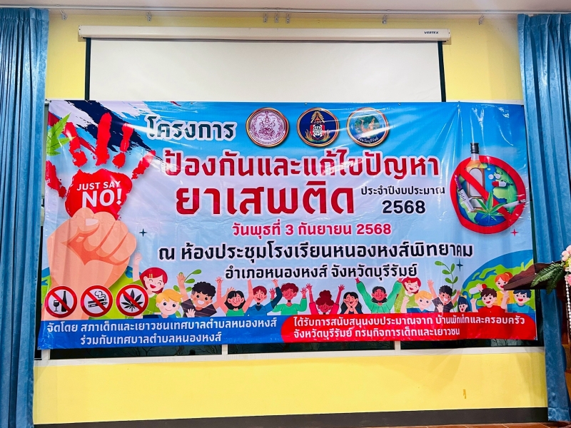 นายกว้าง ศรนอก นายกเทศมนตรีตำบลหนองหงส์ เป็นประธานในพิธีเปิดโครงการป้องกันและแก้ไขปัญหายาเสพติด ประจำปีงบประมาณ พ.ศ. 2568 โดยมี นายวิทยา บุญล้อม ปลัดเทศบาลตำบลหนองหงส์ เป็นผู้กล่าวรายงานวัตถุประสงค์การจัดโครงการ ซึ่งมี นายธีราพัฒน์ แก้วพลงามผู้อำนวยการโรงเรียนหนองหงส์พิทยาคม รองผู้อำนวยการโรงเรียนหนองหงส์พิทยาคม พร้อมด้วย คณะผู้บริหาร ประธานสภาเทศบาล สมาชิกสภาเทศบาล หัวหน้าส่วนราชการ พนักงานเทศบาลตำบลหนองหงส์ เจ้าหน้าที่สถานีตำรวจภูธรหนองหงส์ คุณครูและนักเรียนกลุ่มเป้าหมายในการเข้าร่วมอบรมประกอบด้วยนักเรียนสภาเด็กและเยาวชนเทศบาลตำบลหนองหงส์ โรงเรียนหนองหงส์พิทยาคม จำนวนทั้งสิ้น 110 คน เข้าร่วมโครงการฯ ณ ห้องประชุมโรงเรียนหนองหงส์พิทยาคม อำเภอหนองหงส์ จังหวัดบุรีรัมย์