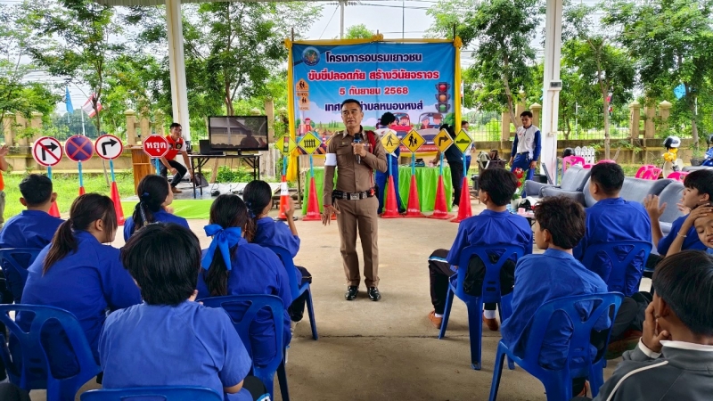 “เทศบาลตำบลหนองหงส์ จัดโครงการอบรมเยาวชนขับขี่ปลอดภัยสร้างวินัยจราจร ประจำปี พ.ศ. 2568”
