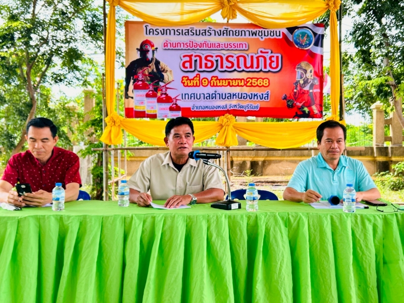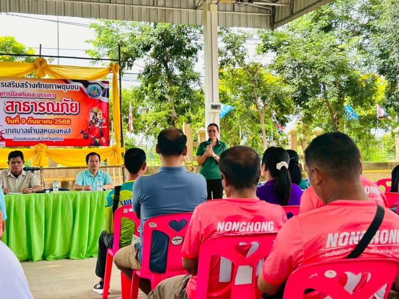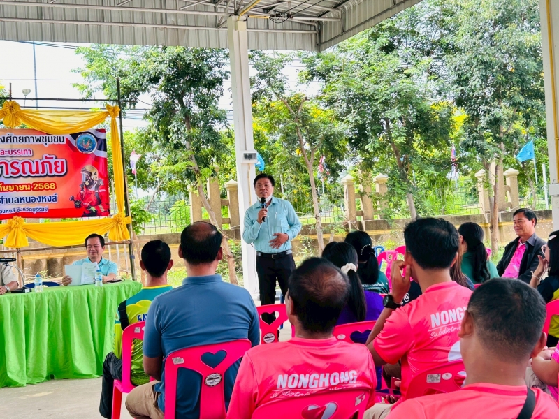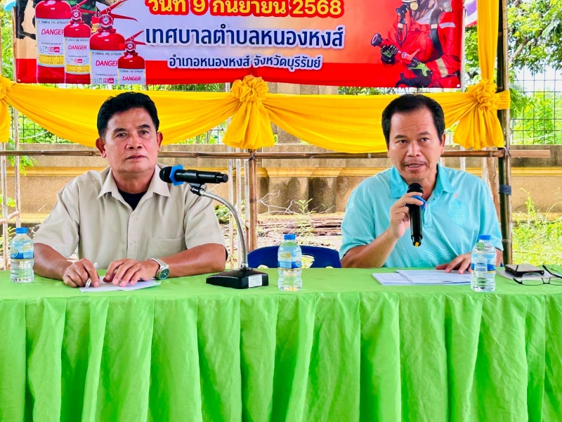 นายกว้าง ศรนอก นายกเทศมนตรีตำบลหนองหงส์ พร้อมด้วย คณะผู้บริหาร ปลัดเทศบาล หัวหน้าส่วนราการ ข้าราชการ พนักงานจ้าง เทศบาลตำบลหนองหงส์ ร่วมประชุมรับฟังนโยบายแนวทางการนำไปปฏิบัติ เพื่อแจ้งข้อราชการหารือ และติดตามผลการปฏิบัติงานของแต่ละกอง ประจำเดือนกันยายน 2568 ในการปฏิบัติงาน ณ อาคารโรงจอดรถงานป้องกันและบรรเทาสาธารณภัย เทศบาลตำบลหนองหงส์