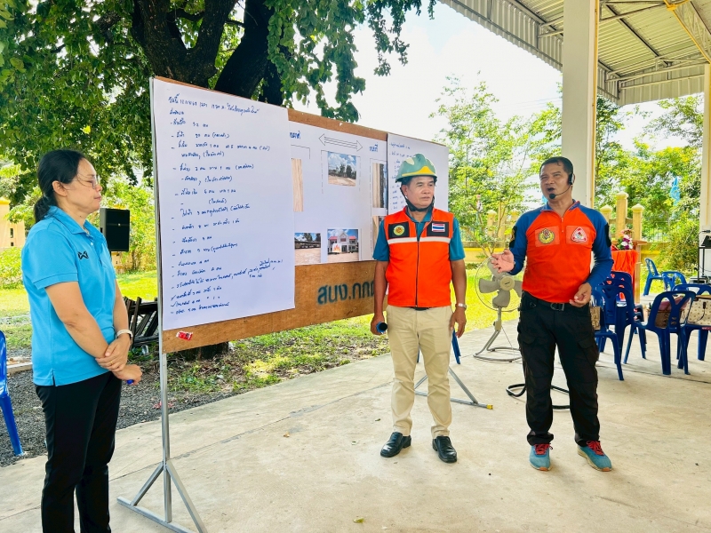 สำหรับการจัดโครงการฯ ครั้งนี้ ได้รับเกียรติวิทยากรจาก จ่าเอกสุทธิพงศ์ เครือณรงค์สันติ เจ้าพนักงานป้องกันและบรรเทาสาธารณภัยชำนาญงาน พร้อมคณะ จากเทศบาลตำบลบ้านด่าน โดยบรรยายหัวข้อ เรื่อง ความรู้เรื่องระเบียบกฎหมายในการป้องกันสาธารณภัย ภัยพิบัติต่างๆ ในชุมชน การป้องกันสาธารณภัยในชุมชน การวางแผนเข้าระงับเหตุเพลิงไหม้ (Table Top) วิธีการใช้อุปกรณ์ดับเพลิงเบื้องต้น และวิธีการช่วยเหลือผู้ประสบภัยที่ติดในอาคาร
