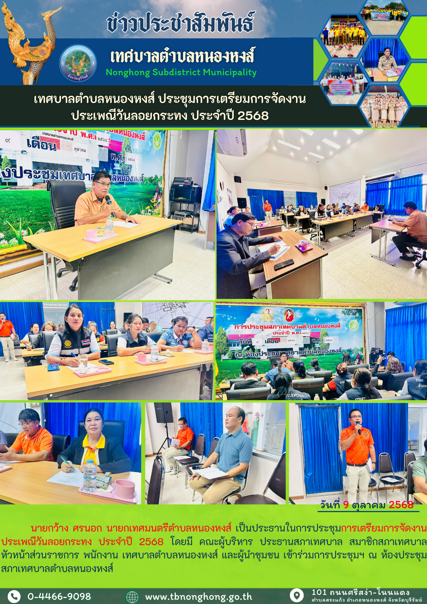 เทศบาลตำบลหนองหงส์ ประชุมการเตรียมการจัดงานประเพณีวันลอยกระทง ประจำปี 2568