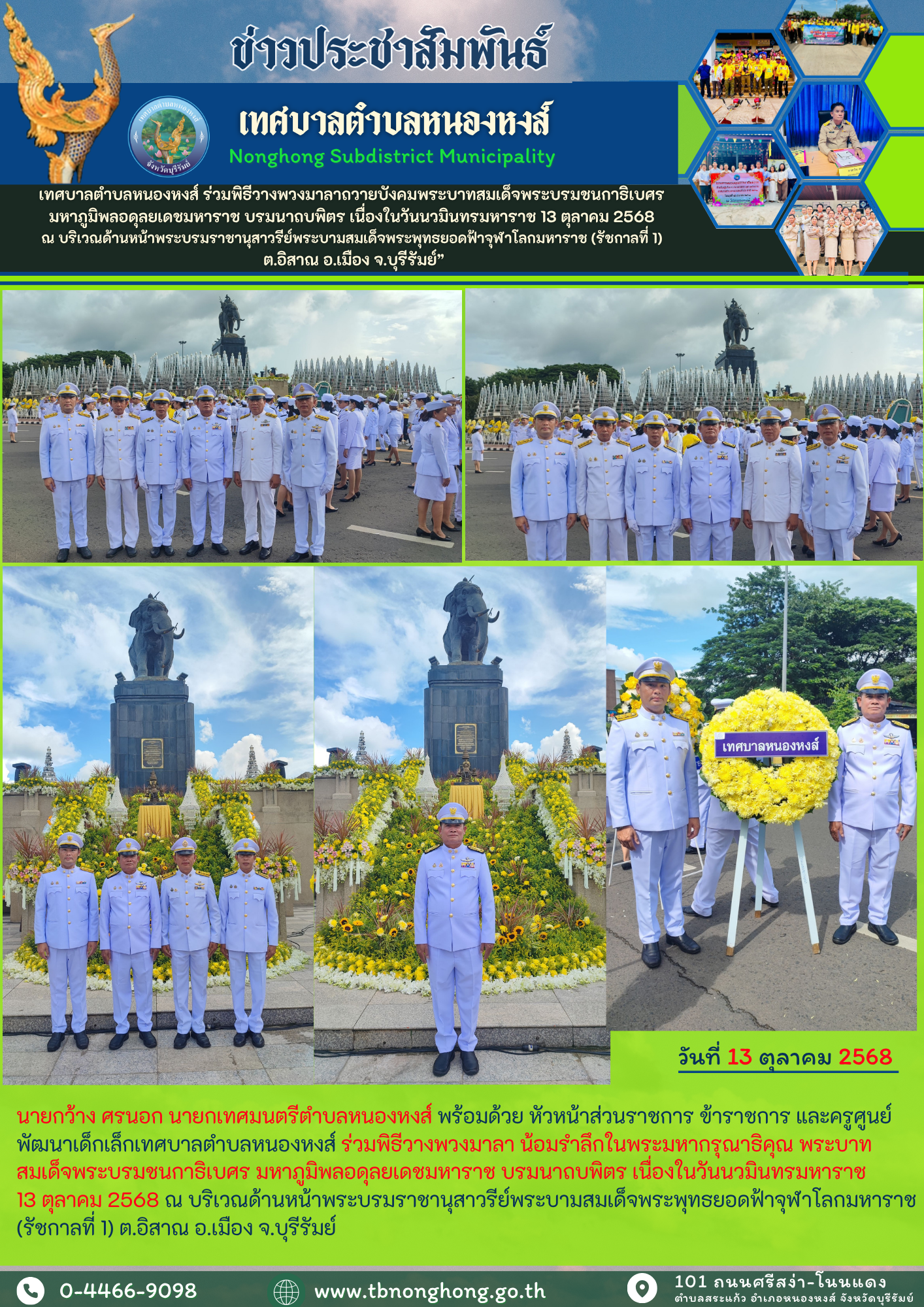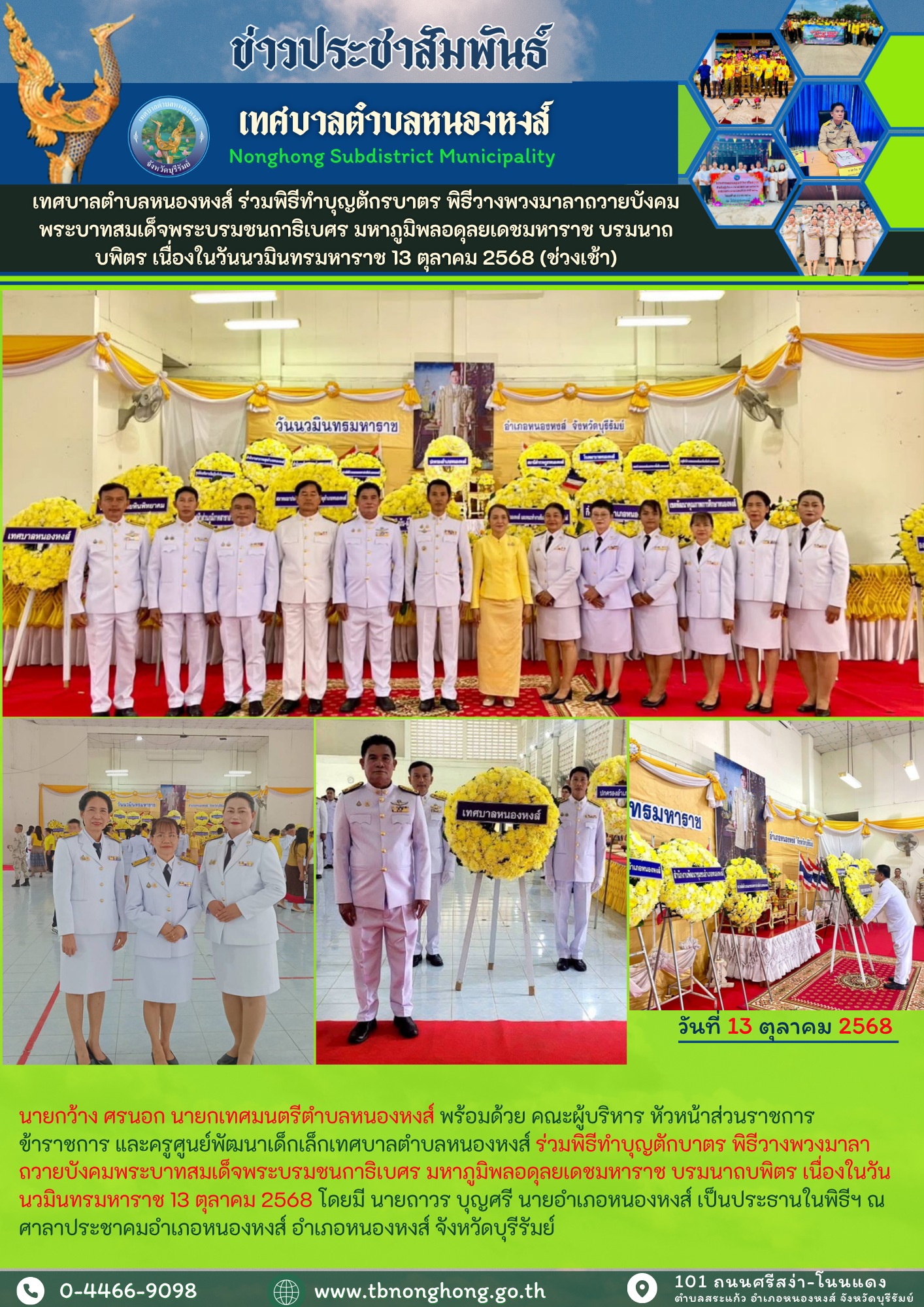 เทศบาลตำบลหนองหงส์ ร่วมพิธีวางพวงมาลาถวายบังคมพระบาทสมเด็จพระบรมชนกาธิเบศร มหาภูมิพลอดุลยเดชมหาราช บรม